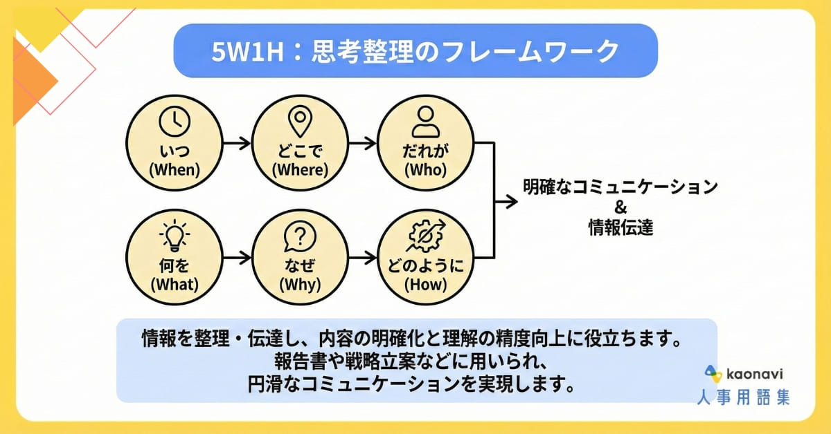 そのようなときに役立つのが、5W1Hです。この記事では、5W1Hの基本的な考え方から実際のビジネスシーンでの活用例、さらには応用できる発展形フレームワークまでを詳しく解説します。