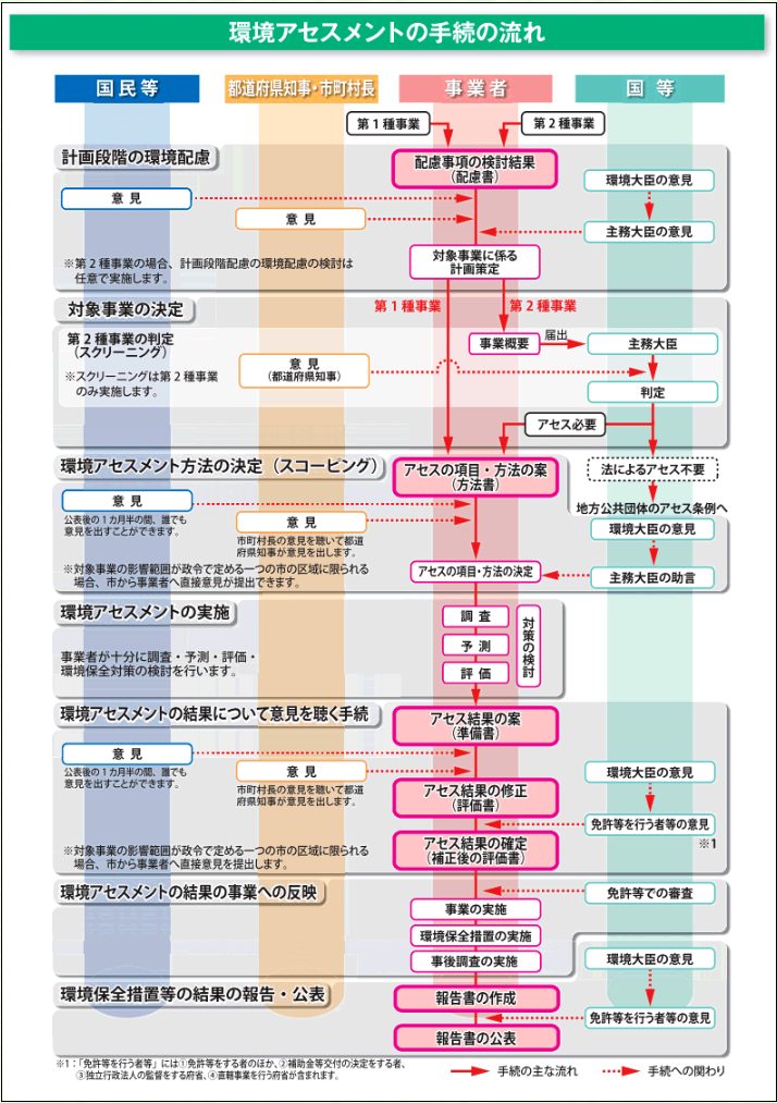 地域事情に詳しい住民や自治体の声を反映させつつ、事業者自らが環境への影響を調査・予測・検討することになっています。