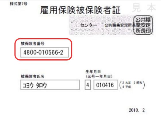 雇用保険に加入している事業所に発行される雇用保険番号で、4桁-6桁-1桁の合計11桁で構成され、それぞれに意味があります。