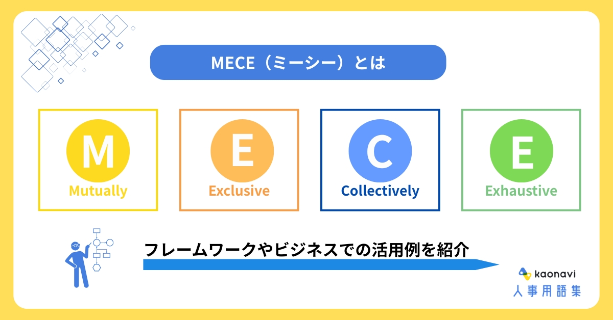 MECEは、複雑な情報や課題を整理するための基礎フレームワークのひとつです。それぞれの頭文字は次のような意味を持ちます。