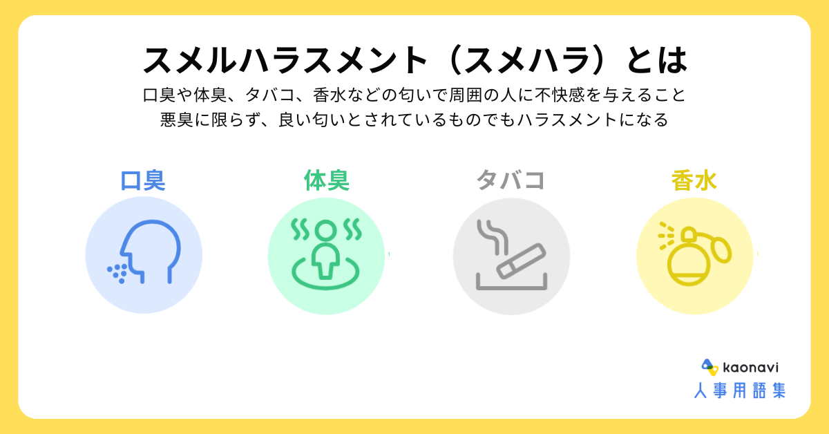 など。スメルハラスメントも軽い問題ではありません。気を付けましょう。