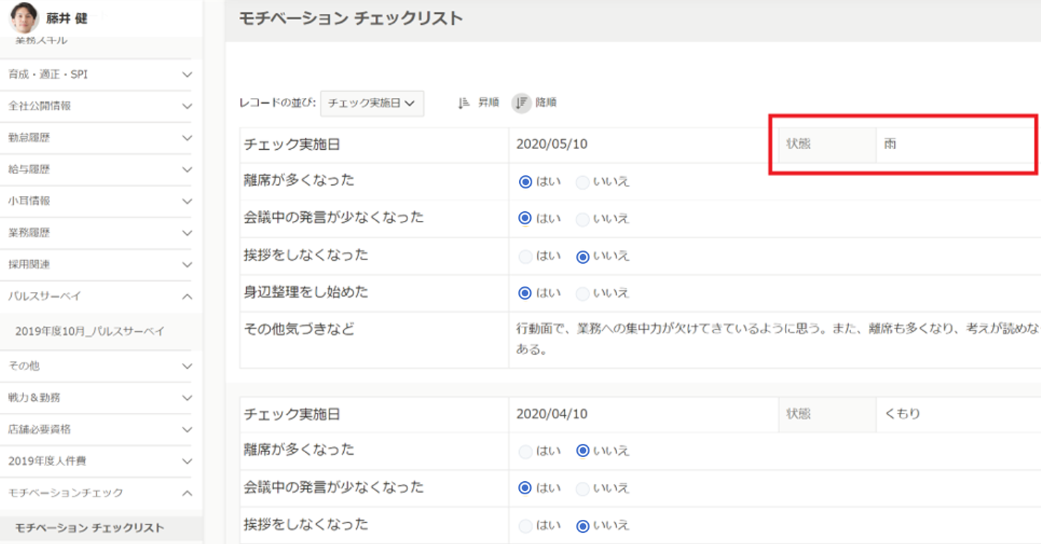 - 状態を「天気」で表し、退職リスクのある社員を抽出しやすくする