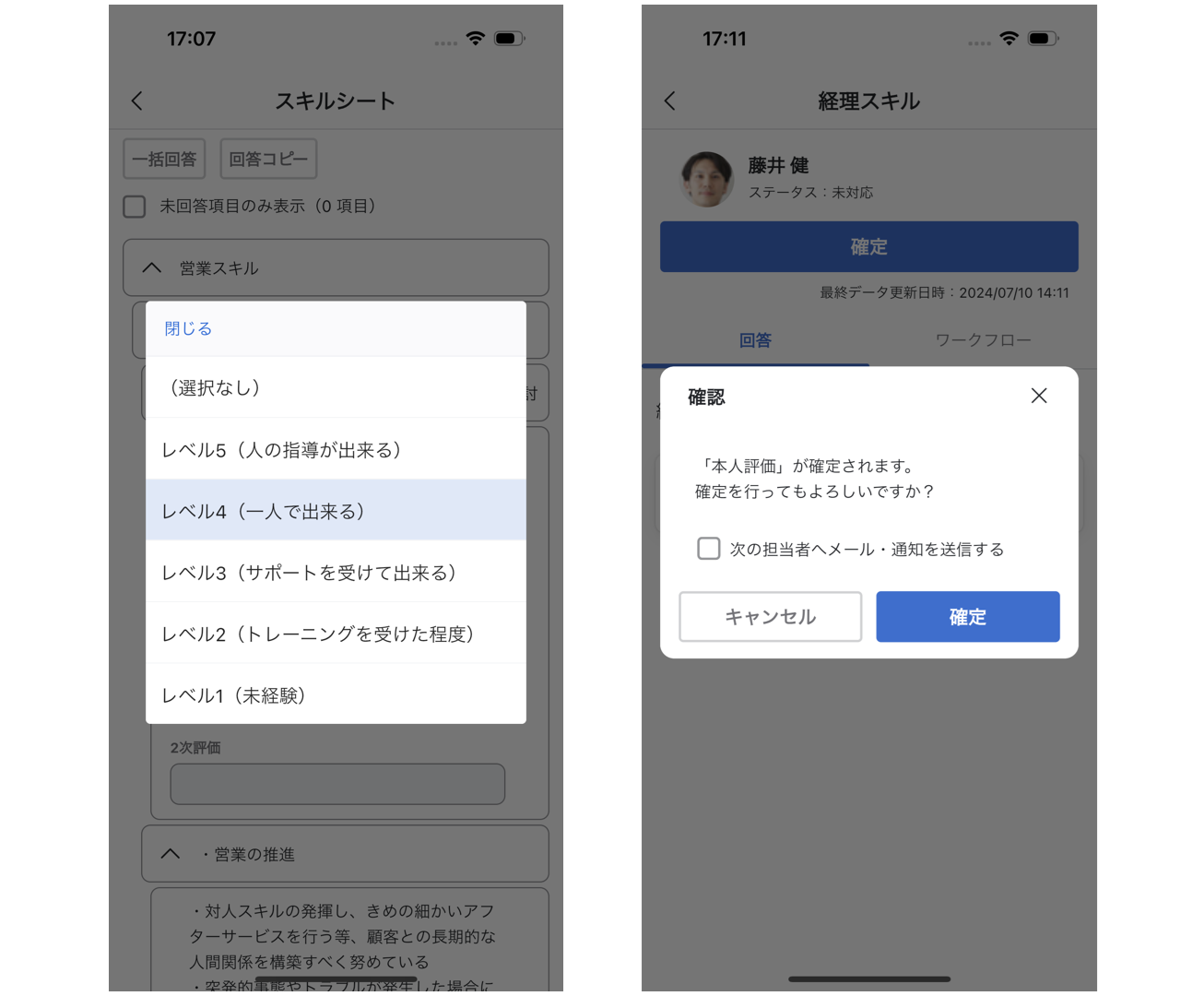 この度のバージョンにて、スキル管理(アビリティマネージャー)での確定・差し戻し時、プッシュ通知がアプリで受け取れるようになりました。