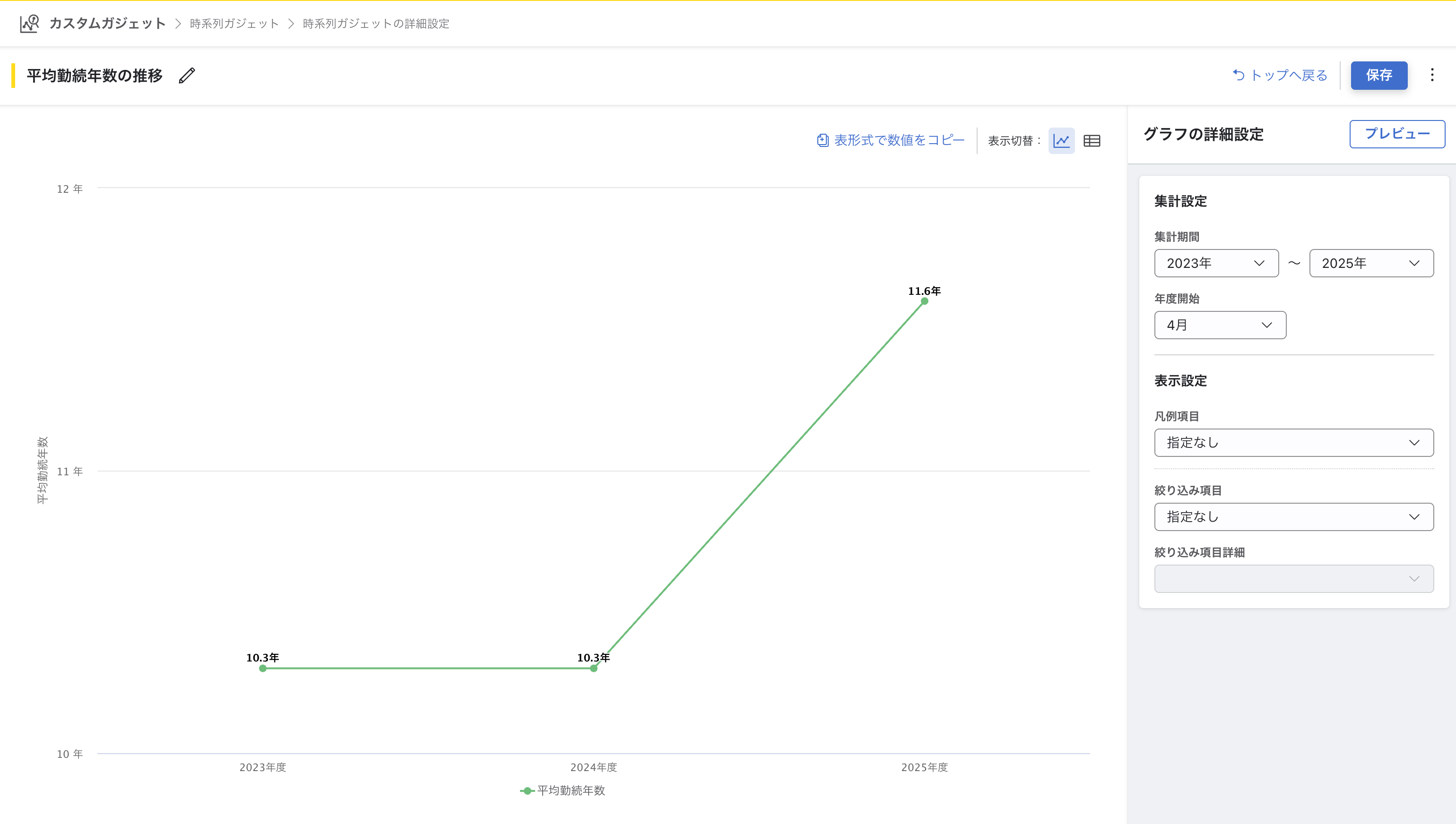 「時系列ガジェット」で「平均勤続年数の推移」グラフが利用できるようになりました