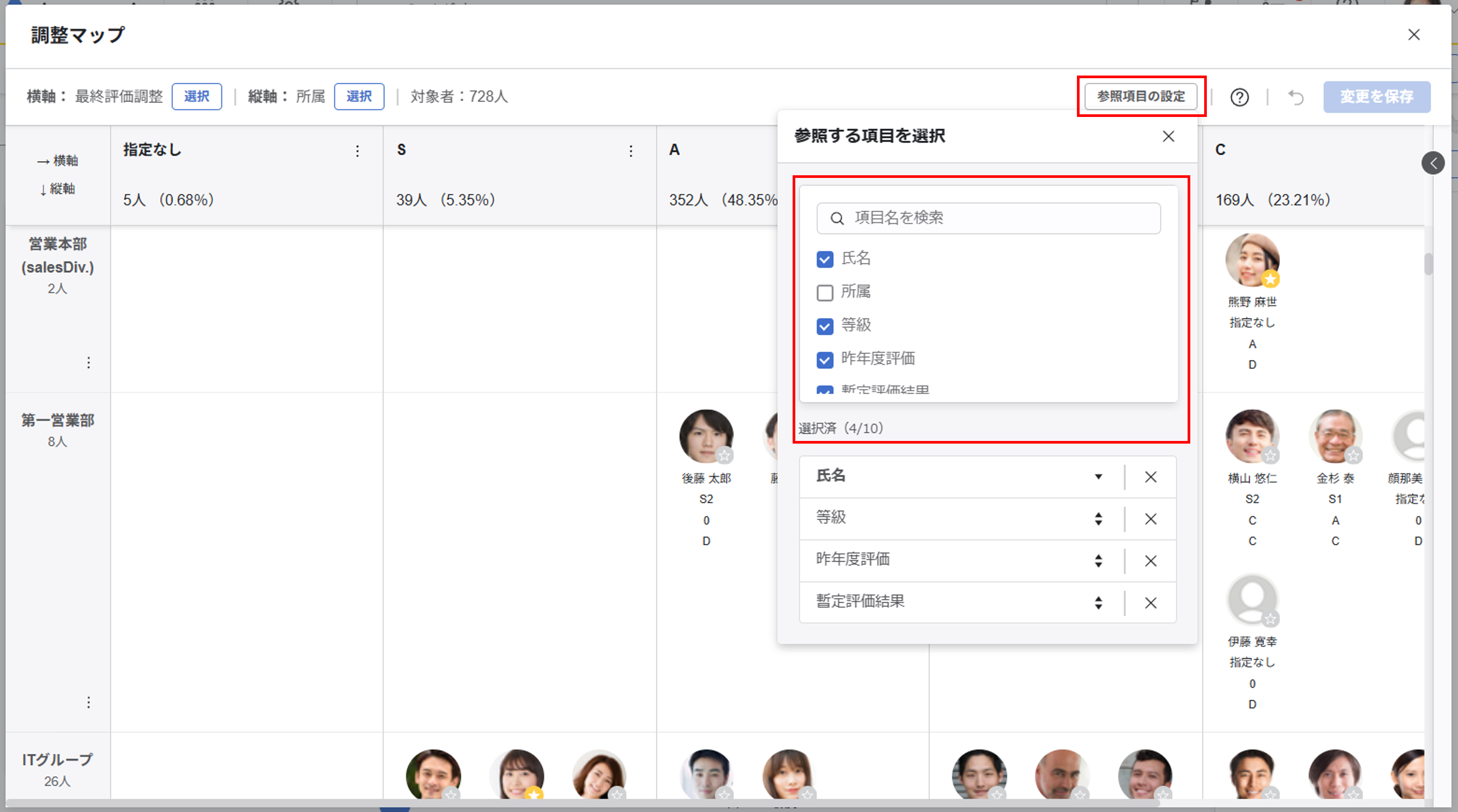 評価ワークフロー(スマートレビュー)の調整マップで参照項目が10件まで表示できるようになりました。
