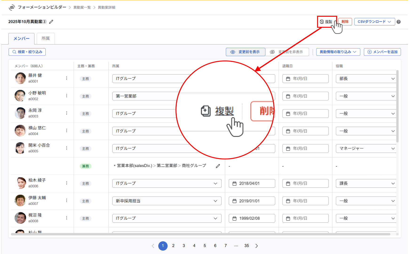異動案を複製できるようになりました