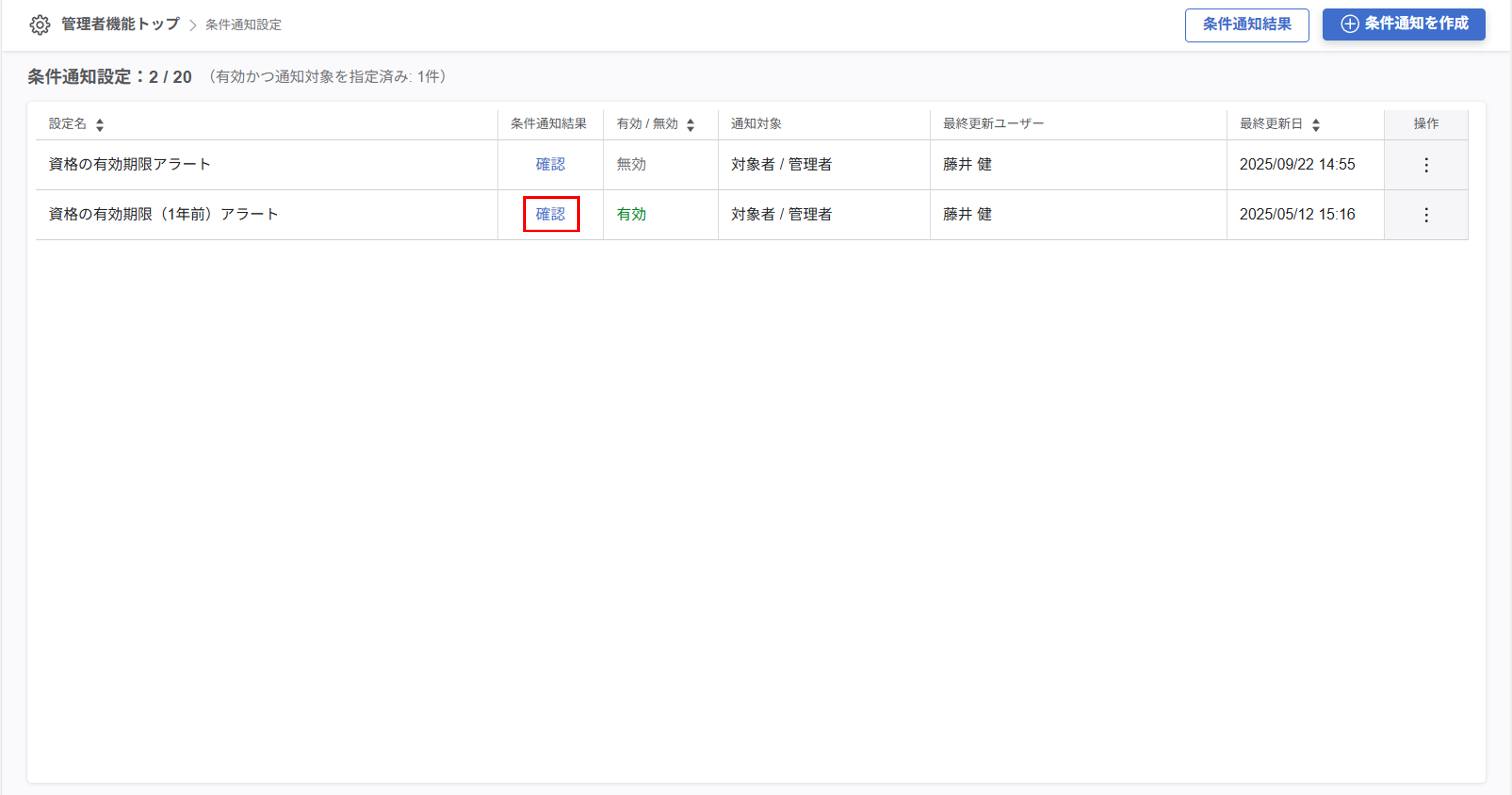 あわせて「条件通知結果(詳細)」では対象者はどのメンバーなのか、またどの対象者と管理者に通知が行われたか、など詳細がより分かりやすく確認できるようになりました。