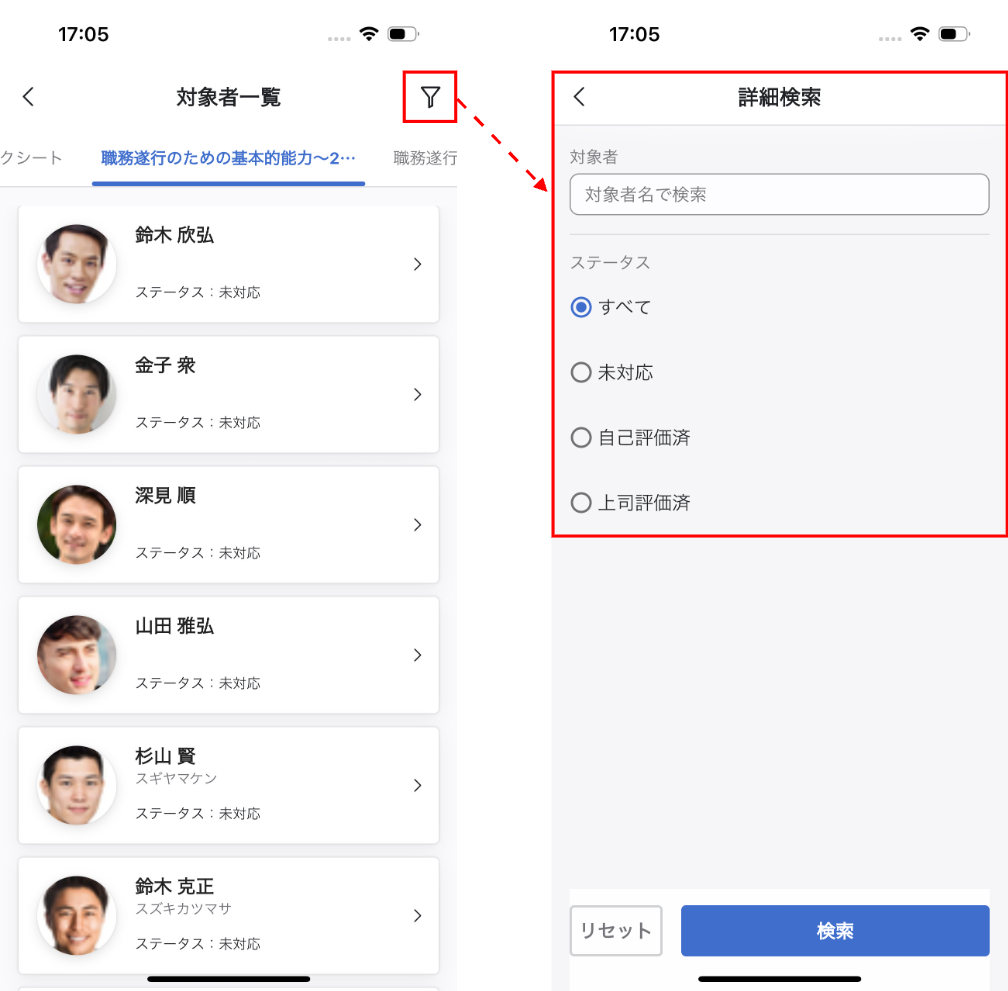 これにより未対応の社員を一覧で素早く確認するといったシーンでご利用いただけます。