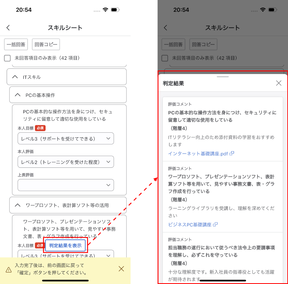 ・スキルシートにて、回答に応じたメッセージを表示できるようになりました(『判定表示』パーツ)。