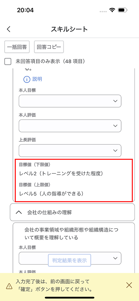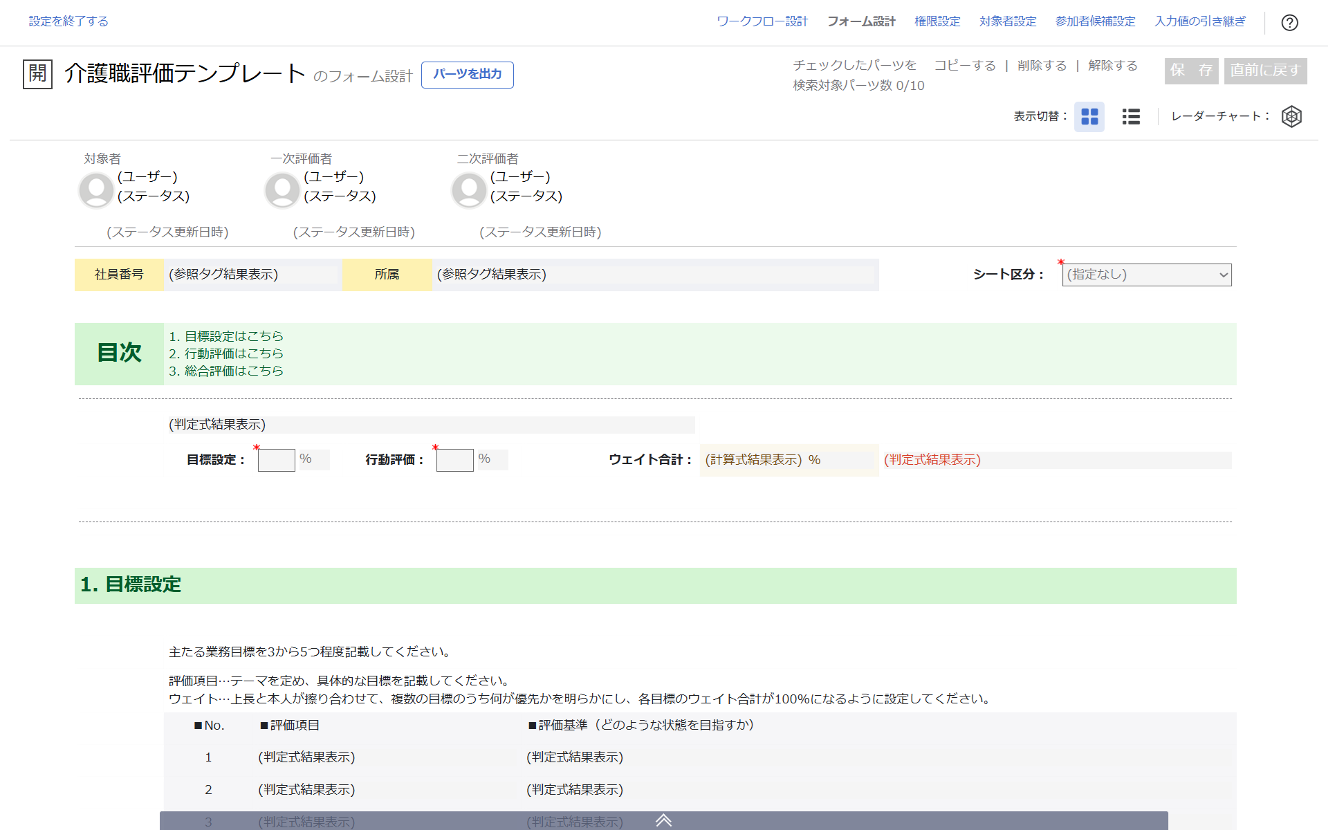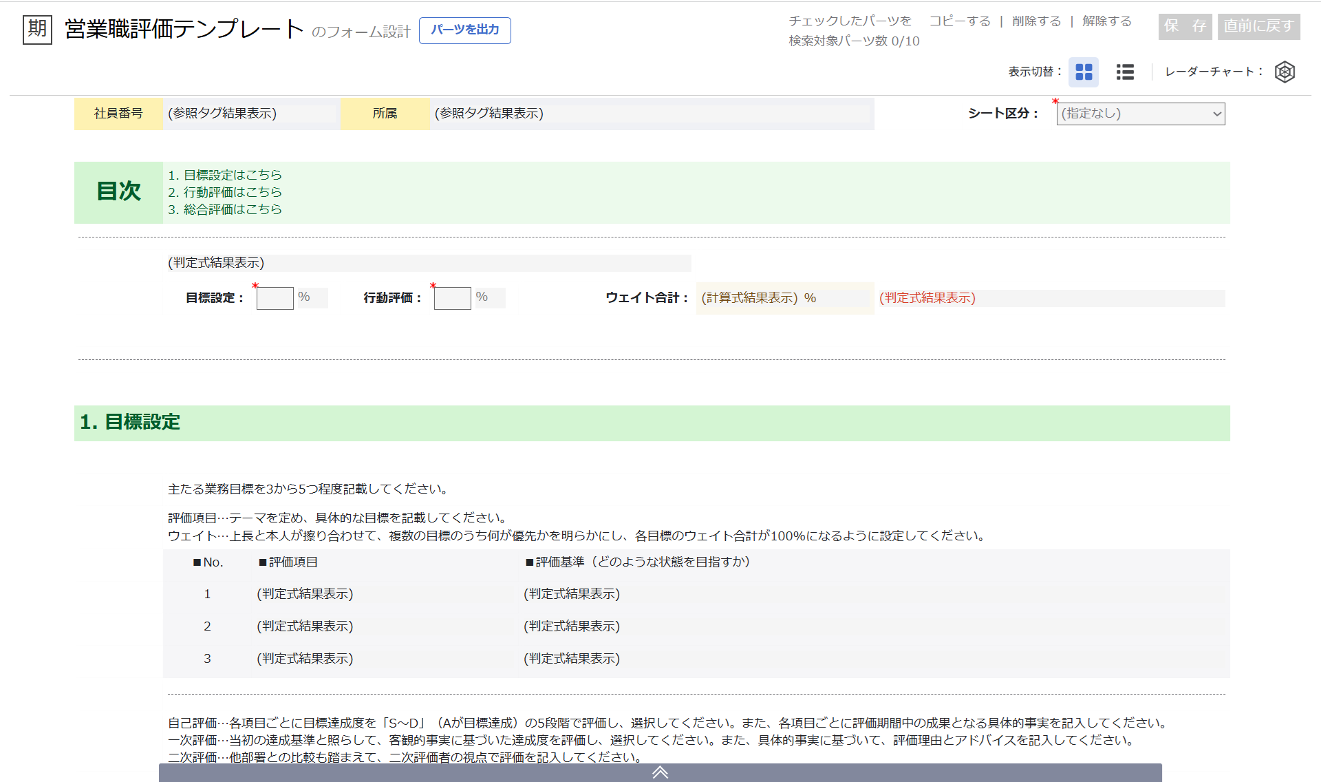 ・スキルシートにて、ディクショナリの項目出し分け設定で設定された目標値の上限・下限を表示できるようになりました(『目標値』パーツ)。