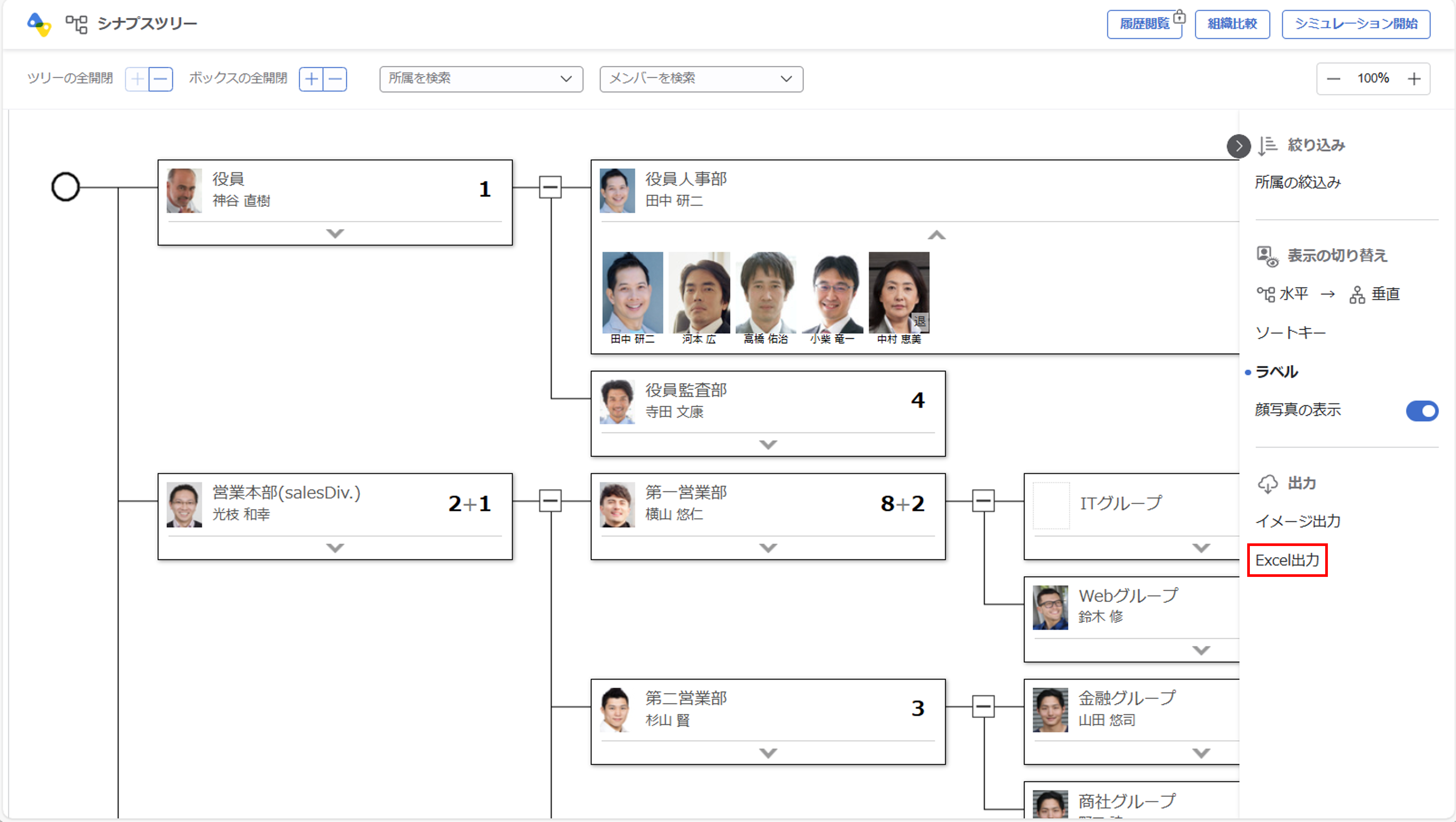 組織ツリー図(シナプスツリー)にて水平(横方向)の組織図をExcel形式で出力できるようになりました。