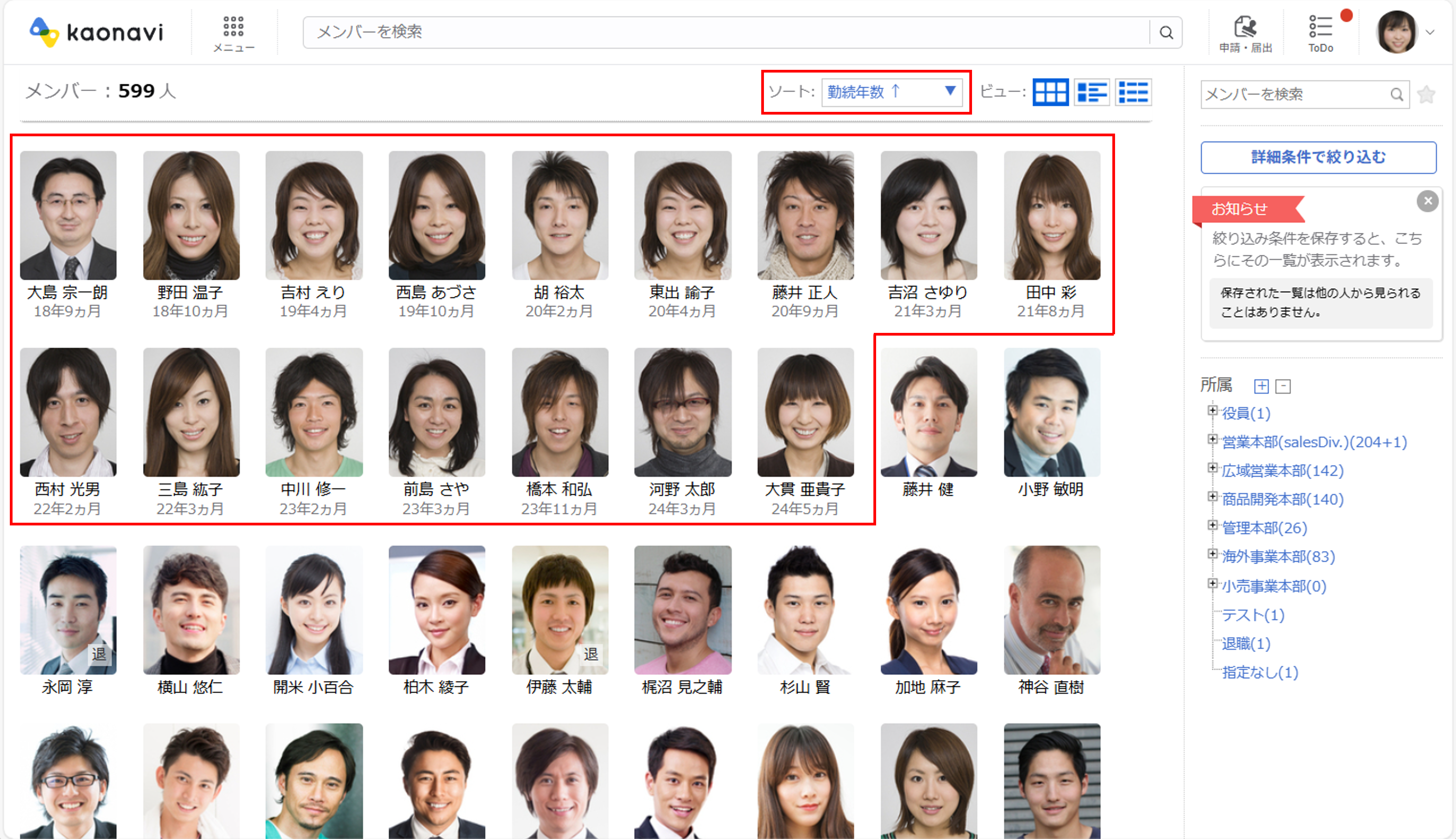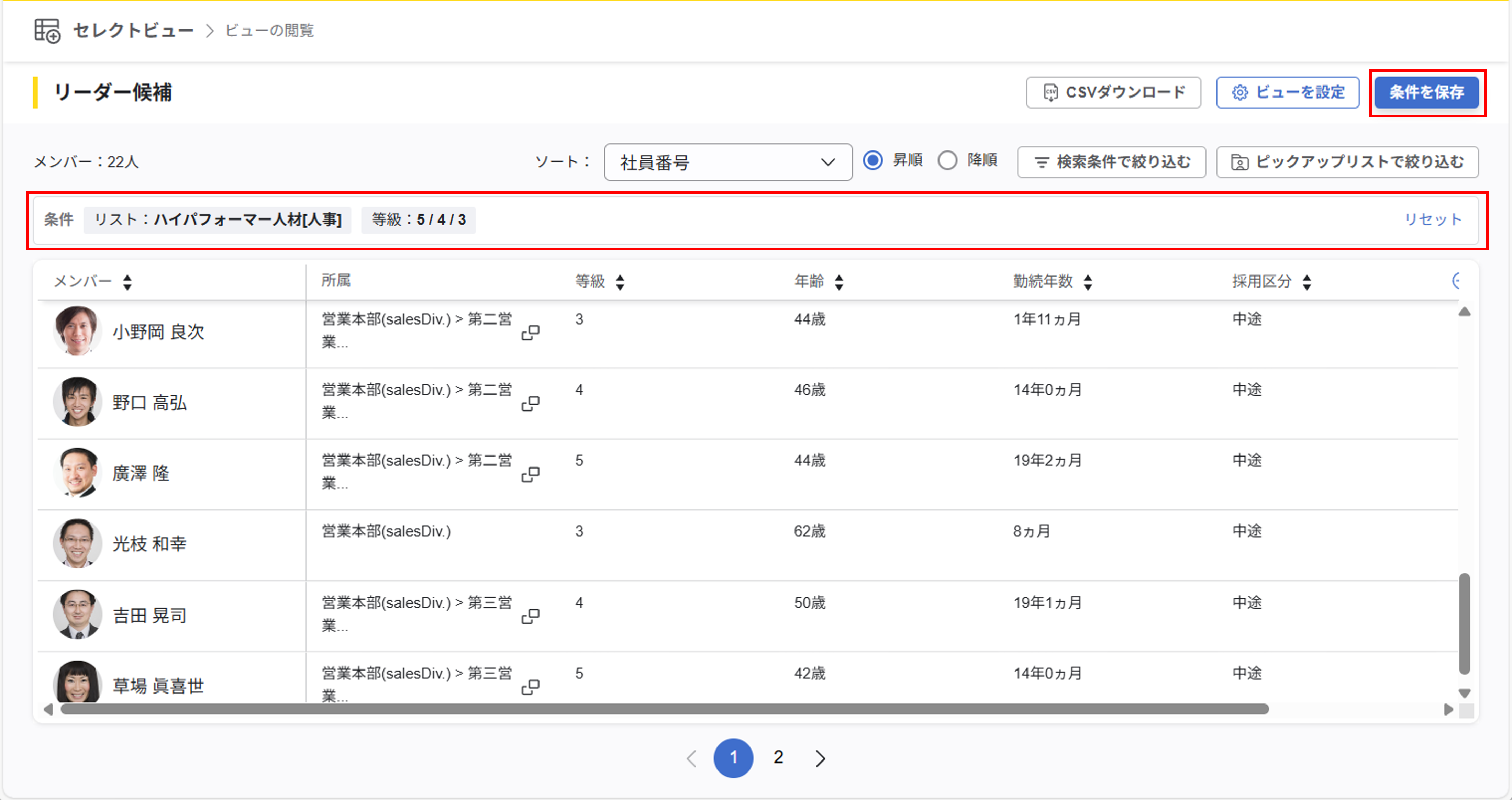 対象メンバーを絞り込んだ状態でビューを保存できるため、用途ごとのビュー作成にご活用ください。