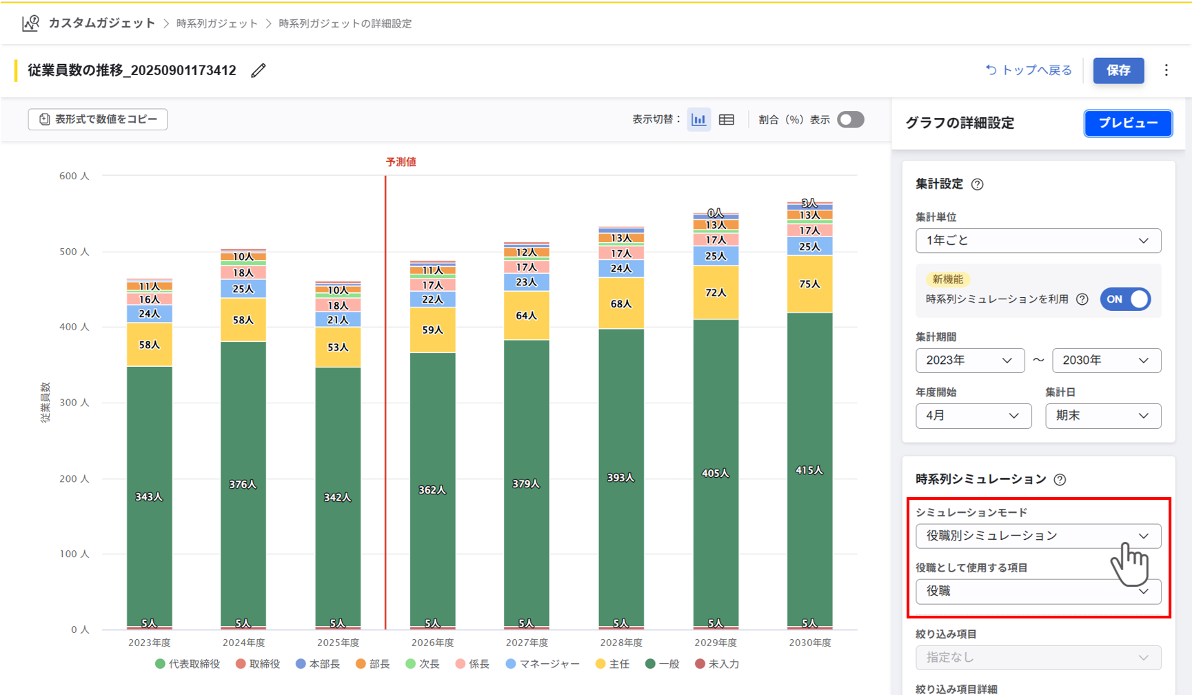 従業員数の時系列シミュレーションにてシミュレーションモードを設定できるようになりました