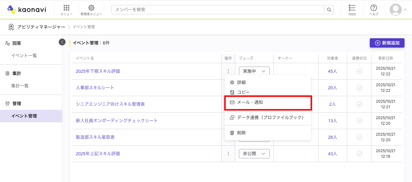 スキル管理(アビリティマネージャー)にて、未完了者(要対応)に簡単にリマインドできるようになりました