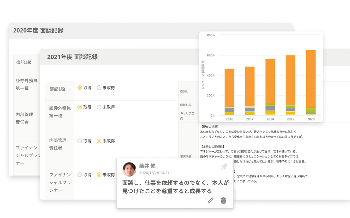 面談情報の経営層・人事・現場間共有に