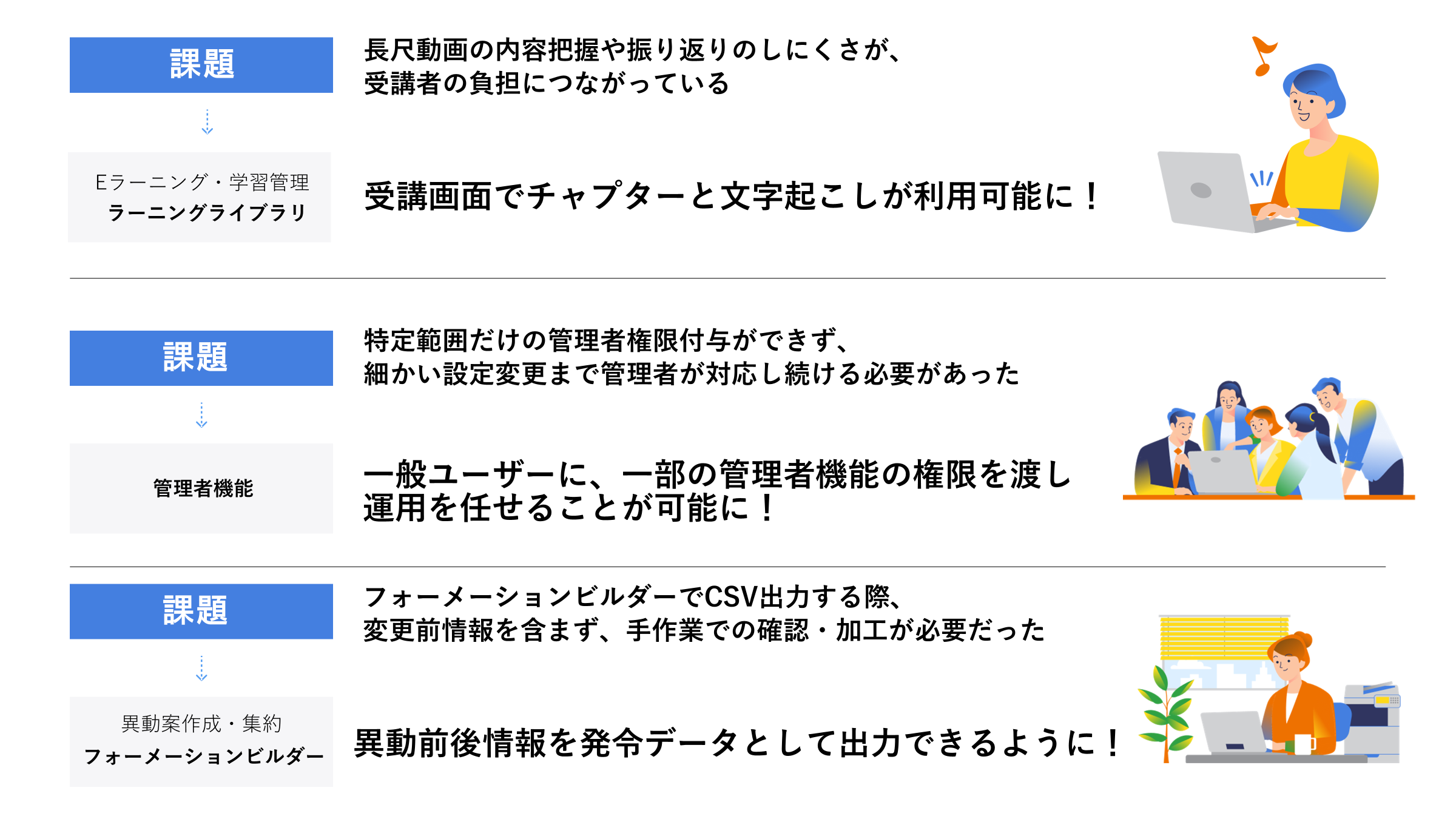 直近の機能改善などカオナビの「最新情報」はもちろん、「これから」についても先取りできる場となっています。