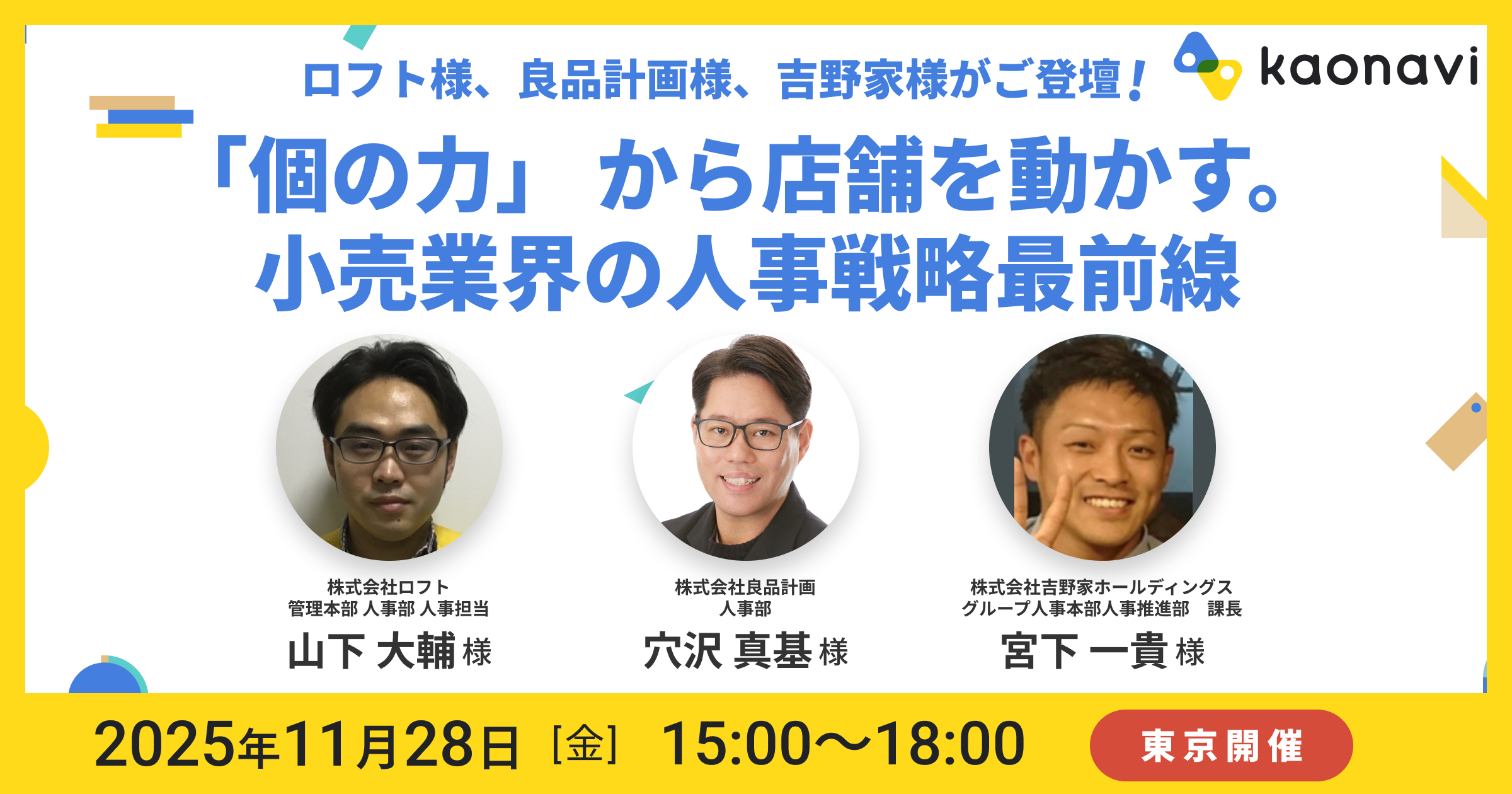 今回はそんな小売業界でこれまでの働き方や人事制度を見直し、「人材育成」や「エンゲージメント向上」に取り組む、株式会社ロフト様、株式会社良品計画様、株式会社吉野家様がご登壇。