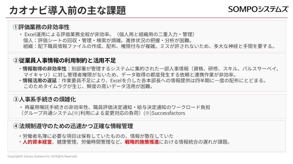 カオナビ導入前には、大きく分けて4つの課題がありました。