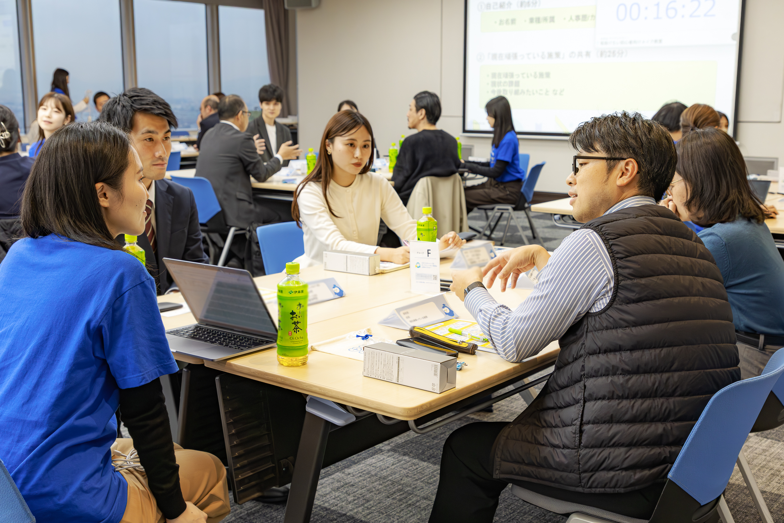 第2部では、参加者同士の交流タイム。「カオナビ」の活用方法はもちろんのこと、運用の工夫や現状の課題など、ユーザーの皆さま同士だからこそ共感できる話題で盛り上がりました。前半は企業規模が近いユーザー同士、後半は関心のある人事課題別でグループに分かれて実施しました。