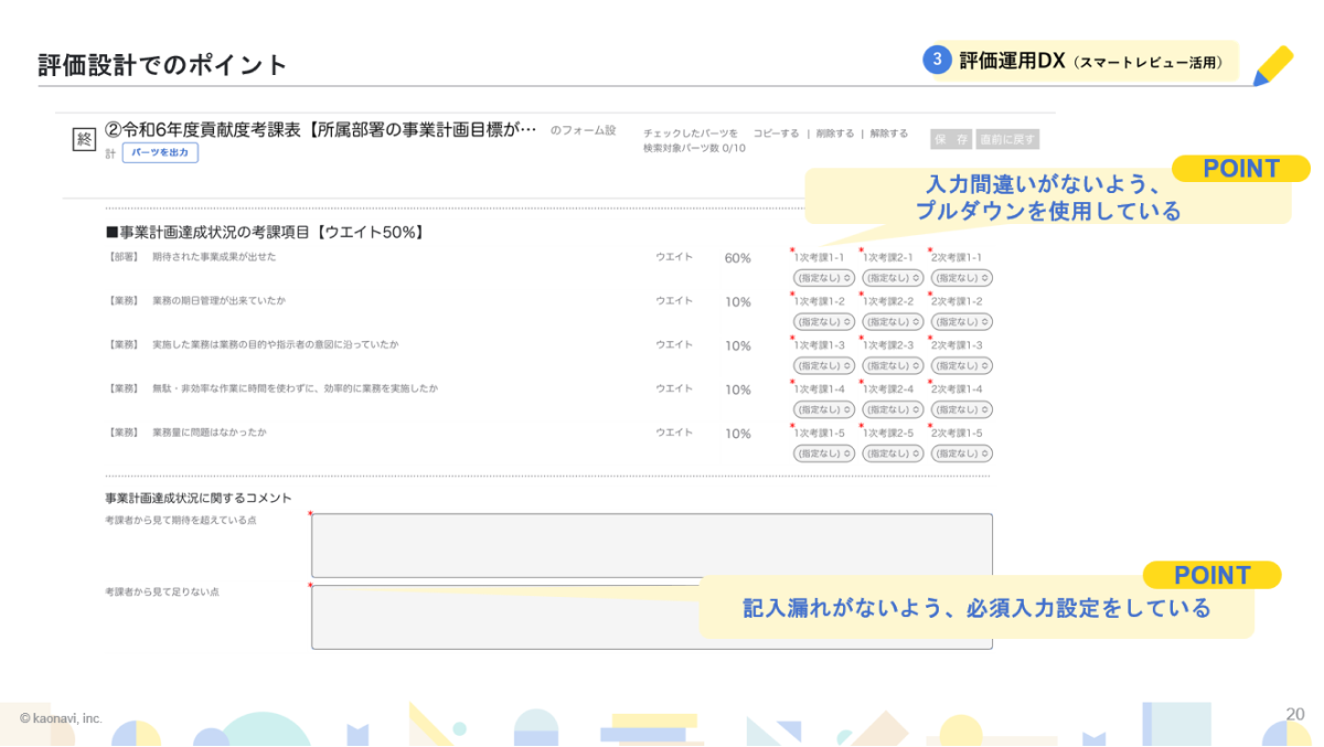 特に課題だったのは能力考課で、職種や等級別に18種類ものシートを使い分けていたため、選択ミスや入力ミスが多発。加えて、未提出者の確認作業にも時間と手間がかかっていました。