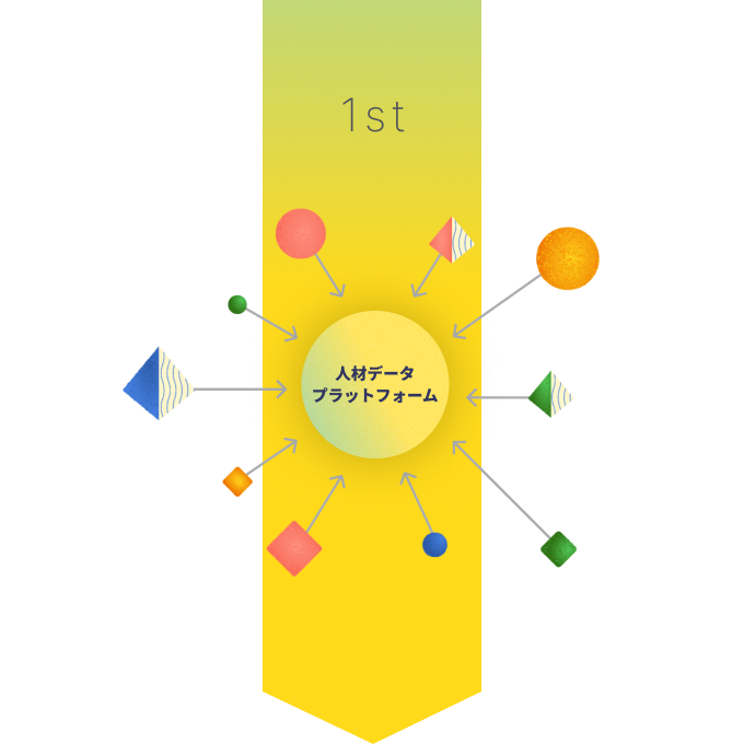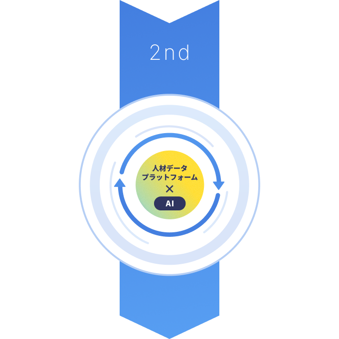 これまでのタレントマネジメントで蓄積された人材データを、タレントインテリジェンスのAI活用によって、より高度化された人材戦略マネジメントにつなげます。
