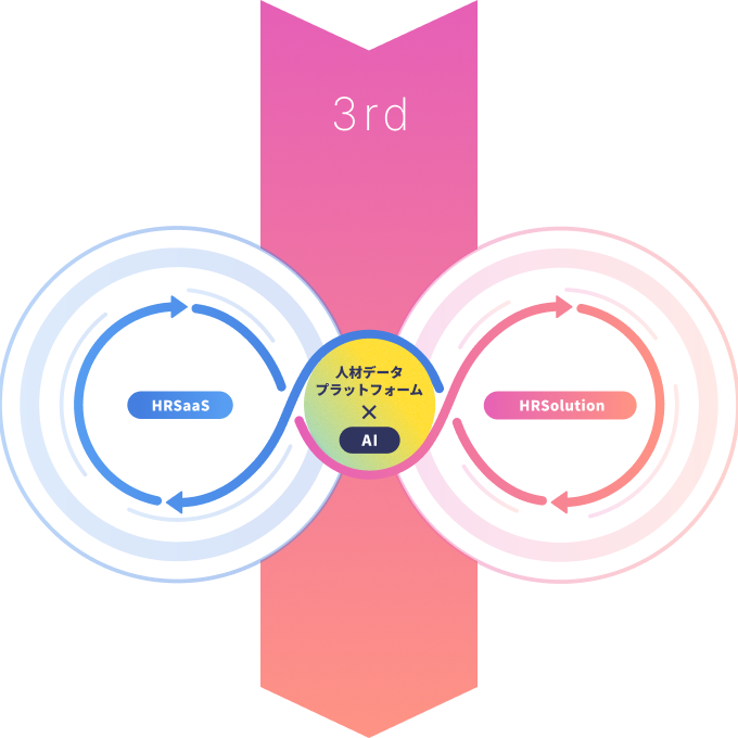 データが集まるほどAIが賢くなり、機能(HRSaaS)と解決策(HRSolution)が進化。